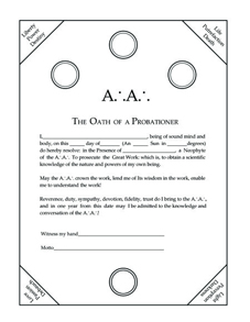 I do hereby resolve: in the Presence of Zelator of the A∴A∴: To prosecute the Great Work: which is, to obtain control of the vacillations of my own being.