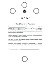 I do hereby resolve: in the Presence of Practicus of the A∴A∴: To prosecute the Great Work: which is, to obtain control of the vacillations of my own being.