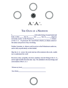 I do hereby resolve: in the Presence of Neophyte of the A∴A∴: To prosecute the Great Work: which is, to obtain control of the vacillations of my own being.