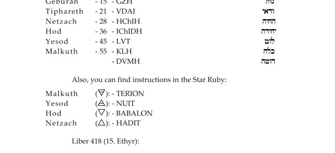 Passwords of the Grades, from Malkuth to Keter.