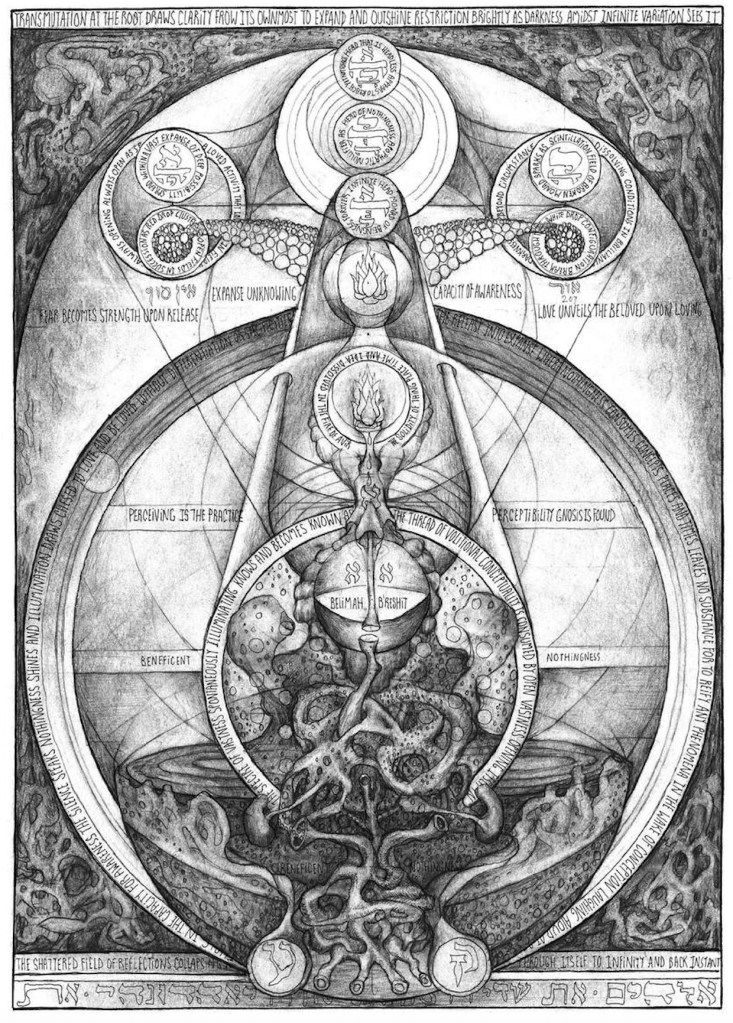 Although the Moon represents a region on the Tree of Life and the destination around which the Zelator orbits, it certainly signifies far more than our limited opinion, which only subtly hints at its nature. Thus, it is important for the Zelator to understand that they are not truly situated on any Tree, nor is this a journey of ascent toward some presumed illumination. It is a process that merely borrows such descriptions so that our minds might grasp them and construct a framework through which we can proceed. Just like the computer monitor in front of us cleverly renders the image of something that the machine processes as alternating voltage and pause—zero and one, which it then translates into something we can understand: meaningful images of letters or icons on a desktop. In reality, there is no desktop, no wallpaper, no folders or files inside the computer. There is only one phenomenon: the alternation of zero and one, and nothing more. Everything we perceive on the screen is a translation of those zeros and ones into a format our minds can interpret and find meaning in. The same is true when we look at the Tree of Life—at the Sephiroth and the Paths. There is no such thing as the Tree of Life, no Sephiroth, no Paths, no circles, and no lines connecting them—only the zero and one, of the same phenomenon we romantically call enlightenment, or LVX. But it is, in truth, entirely unlike anything we can represent or comprehend with our minds—unlike anything we might describe or compare to any other thing—simply because there is no thing that is like it. That one thing is always and only itself; every other thing is infinitely distant and infinitely unlike it, and thus, everything else is, in fact, everything that this one thing is not. By drawing the Tree of Life, we have created a concept that could just as inaccurately have been depicted as a flower, a monkey, or a boring accountant. Every concept is, in itself, infinitely opposed to the concept I speak of. Every act of striving for Knowledge and Conversation, in fact, prevents that knowledge from being attained. Every desire for the Angel renders it impossible to realize the Angel. The experience we seek does not contain within it the phenomenon of nearness or distance, and therefore we cannot know it through approach or attainment, because it is not something to be “known.” The Angel is beyond duality or division. They do not need the Other to be One. The Angel rejects the path of Yoga; the Angel is Yoga itself. The Angel does not seek the Other One to become One; it is enough to be alone with itself. For in their divine aloneness, the Angel cannot conceive of the concept of “self.” They cannot distinguish “themselves” from “everything else.” Simply put, such ideas and concepts hold no value, no meaning, no experience for the Angel.