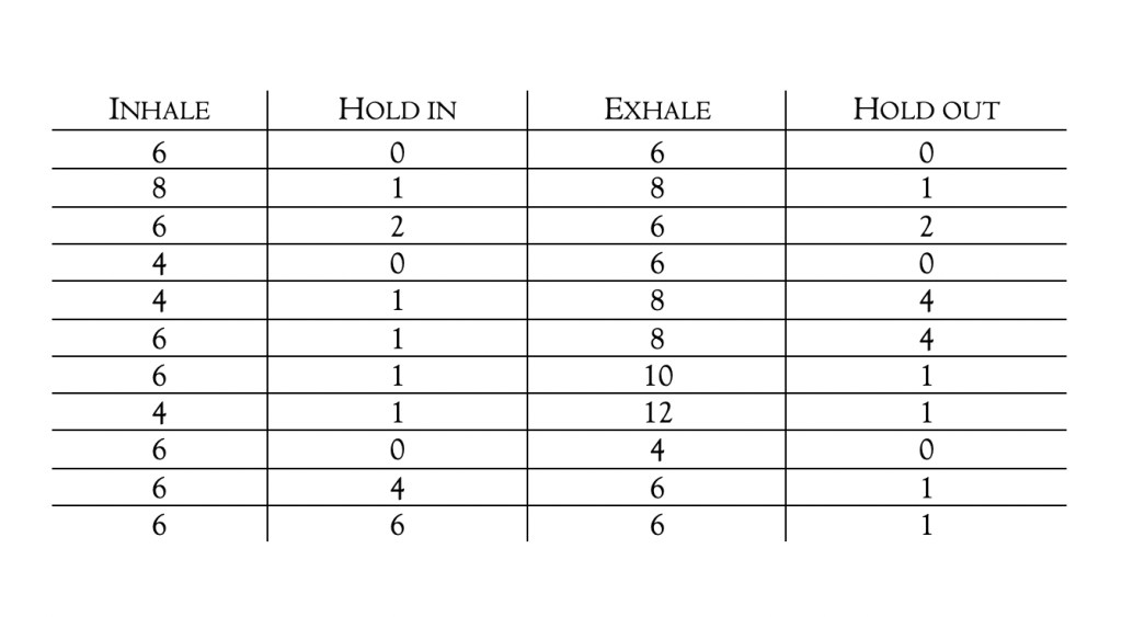 In the beginning, you may notice that your lungs will tremble as you fill them, especially near the end. This trembling will eventually subside with regular practice, although it will make the slow breathing pace more difficult. The Aspirant must be patient until both the respiratory system and the mind adjust to this seemingly strange and unnatural action of taking an incredibly slow breath for over two minutes.