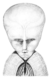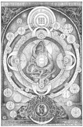 Draw the Sign of the Beast above your head. First, a full circle (shout NUIT), then a dot (say HADIT), and finally, a cross (vibrate RA-HOOR-KHUIT).