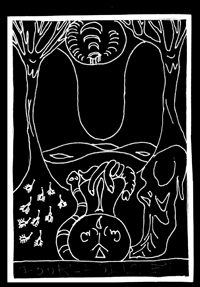 Rhythmic breathing and relaxation. After about 15 minutes, the letter is suddenly showed in silver color on a black background which eventually receives the dark blue color of the night sky.